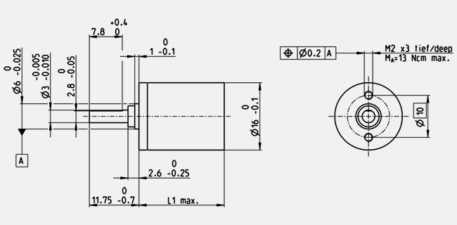 重量 31 g 产品 输出端轴承 烧结轴承 径向间隙 最大0.06 mm, 6 mm(距离法兰) 轴向间隙 0.02 - 0.1 mm 最大径向载荷 20 N, 6 mm(距离法兰) 最大轴向载荷(动态) 8 N 最大轴向压配合力 100 N 最
